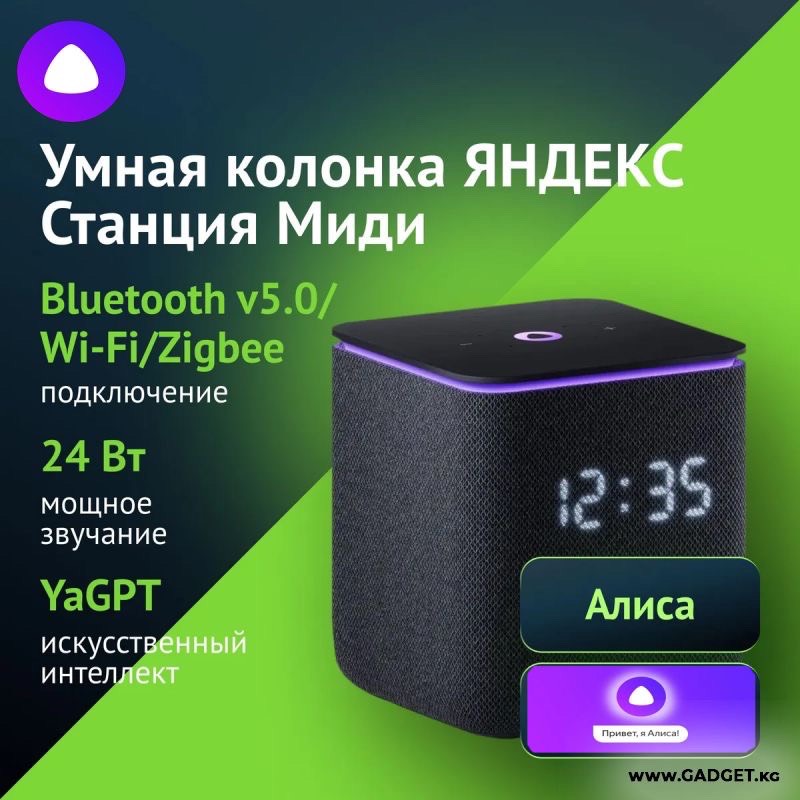 Яндекс Станция Миди — умная колонка с Алисой, качественным звуком и поддержкой умного дома. Воспроизводит музыку, отвечает на вопросы, управляется голосом, подключается по Wi-Fi и Bluetooth. Компактный дизайн для дома или офиса.