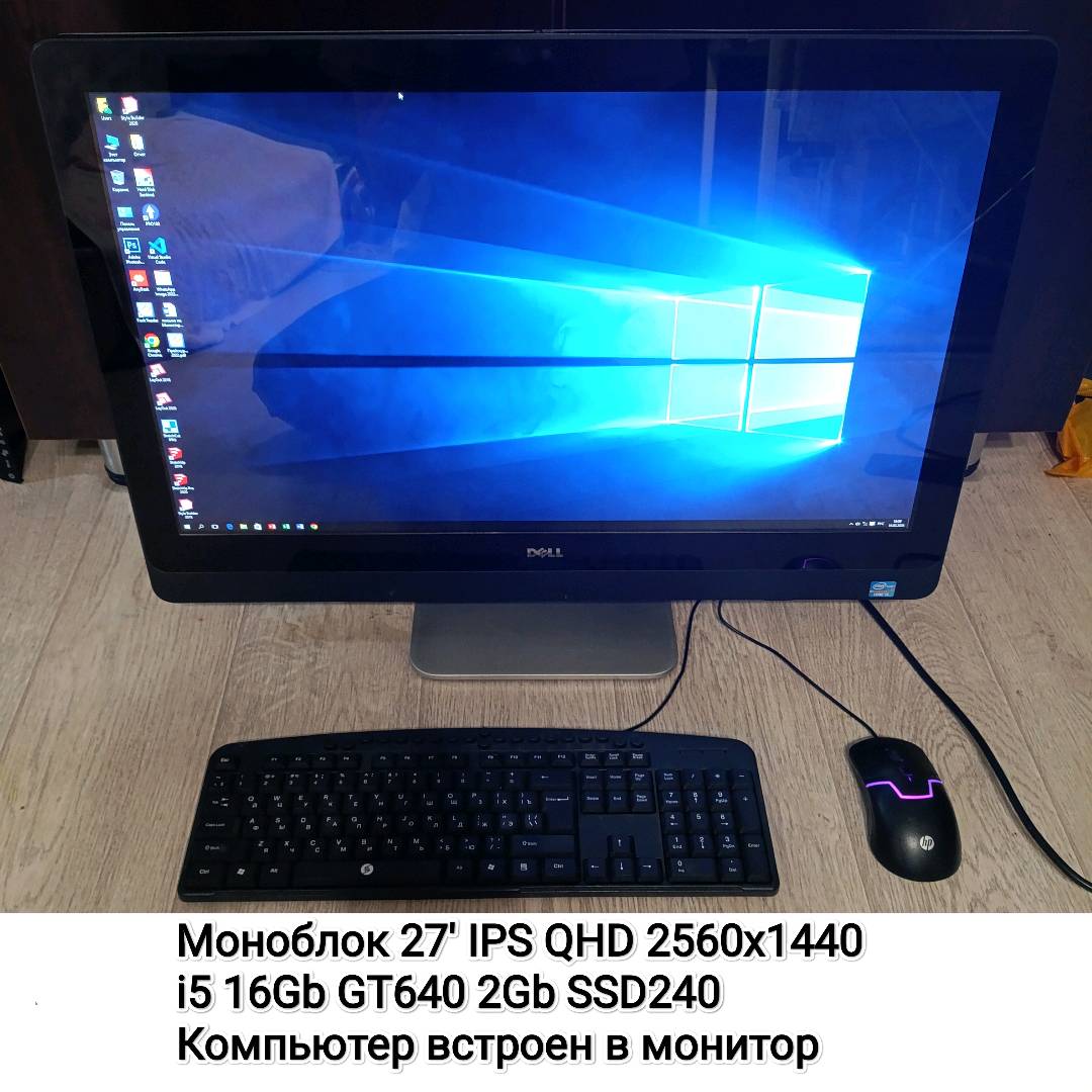 Моноблок Dell 27 дюймов, экран IPS 2K QHD 2560x1440. Core i5 3330S, 16Gb, Video GT640 2Gb, SSD 240Gb (Новый). Моноблок б.у в хорошем состоянии.
