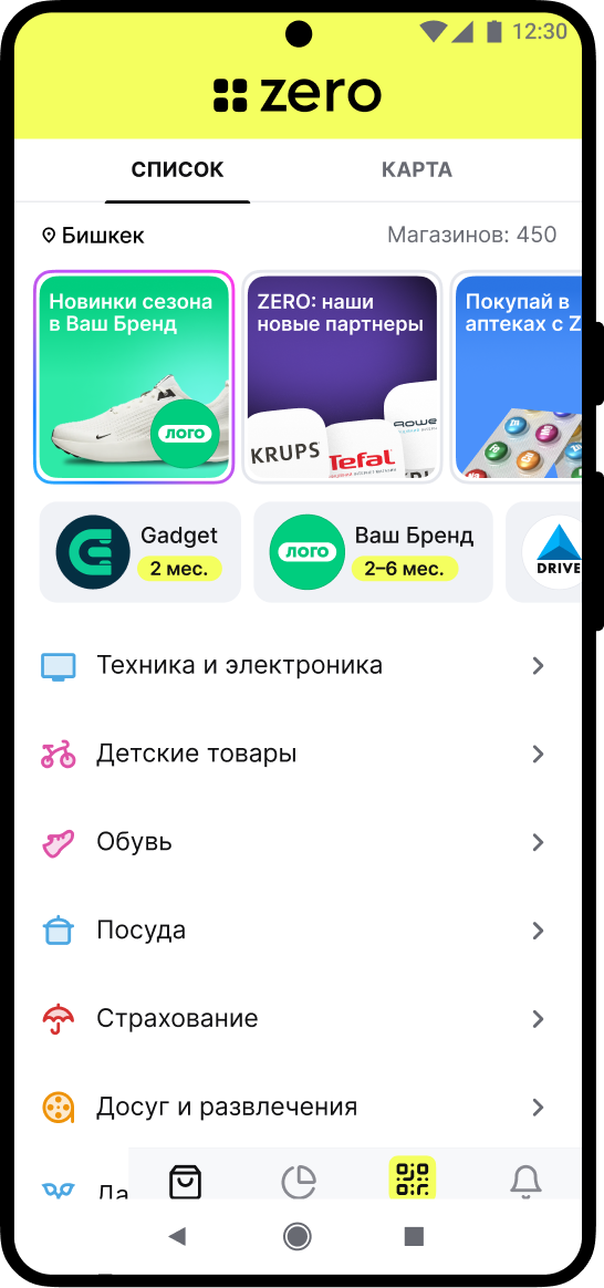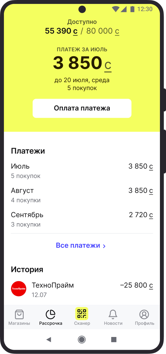 Погашение ежемесячных платежей осуществляется 2 числа каждого месяца с Вашего расчетного счета рассрочки ZERO. Для того, чтобы погашение прошло успешно, пополните свой расчетный счет заранее.
